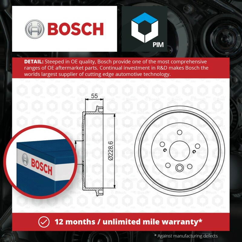 Bosch 2x Brake Drums (Pair) Rear