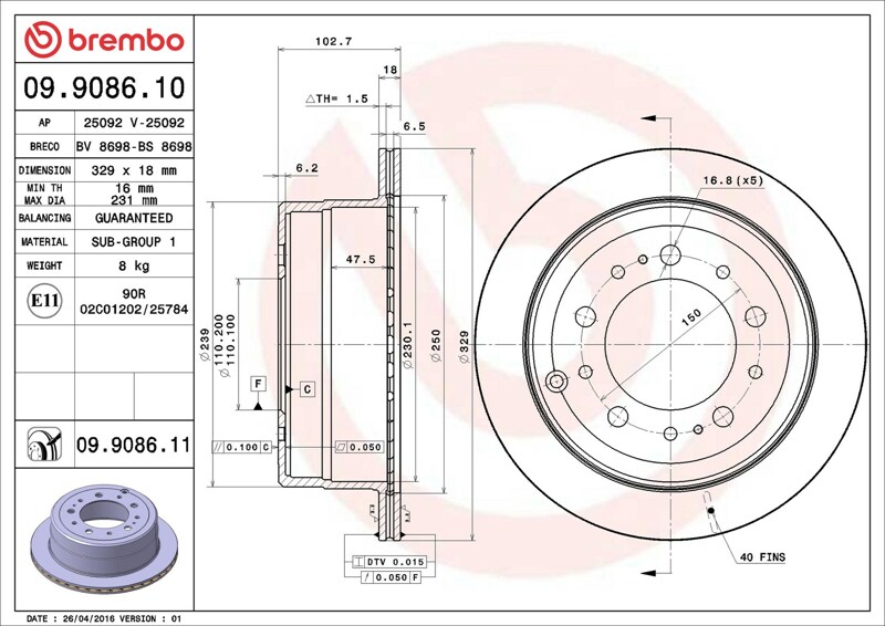 Part number: Brembo 09.9086.11