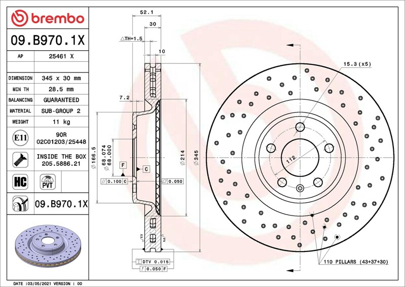 Part number: Brembo 09.B970.1X
