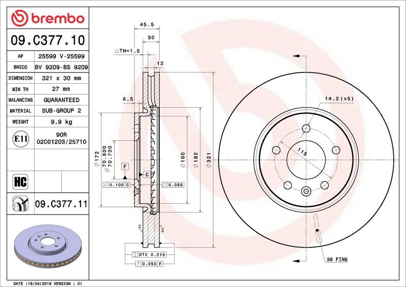 Part number: Brembo 09.C377.11