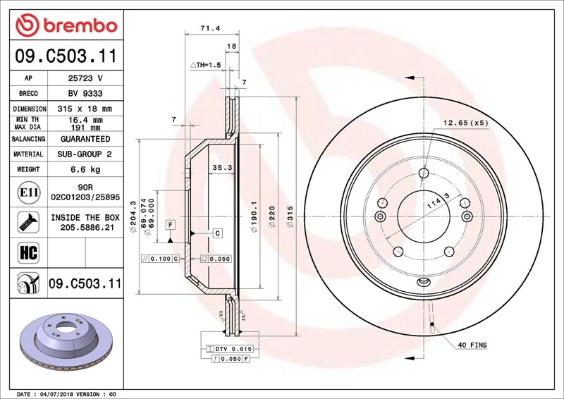 Part number: Brembo 09.C503.11