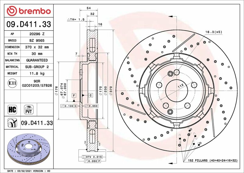 Part number: Brembo 09.D411.33