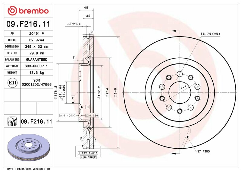 Part number: Brembo 09.F216.11