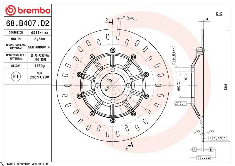 | Outer diameter | 285 mm |