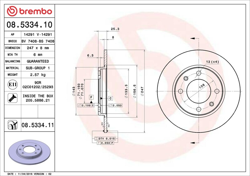Part number: Brembo 08.5334.11