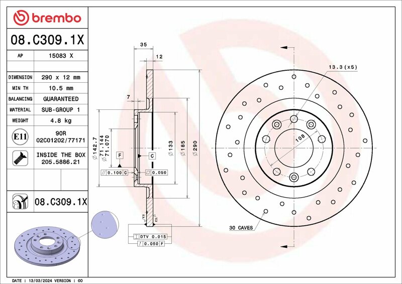 Part number: Brembo 08.C309.1X
