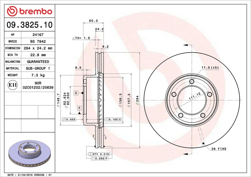 Part number: Brembo 09.3825.10