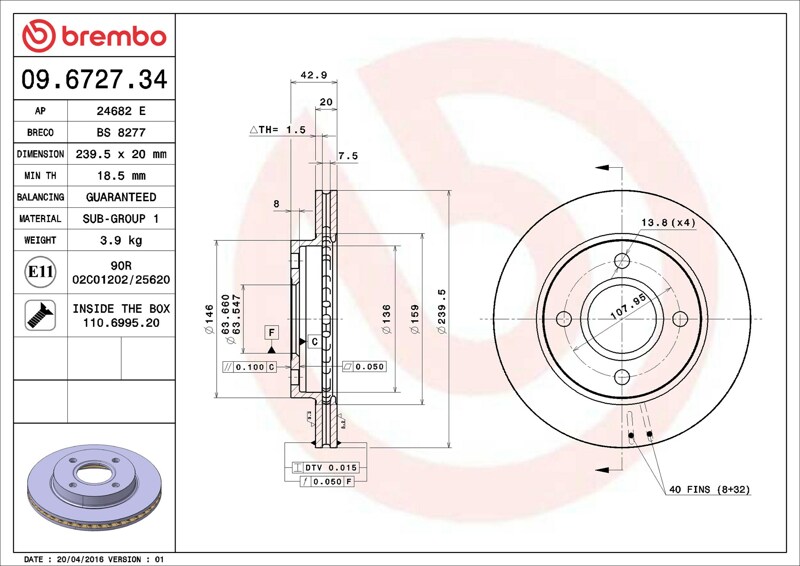 Part number: Brembo 09.6727.34