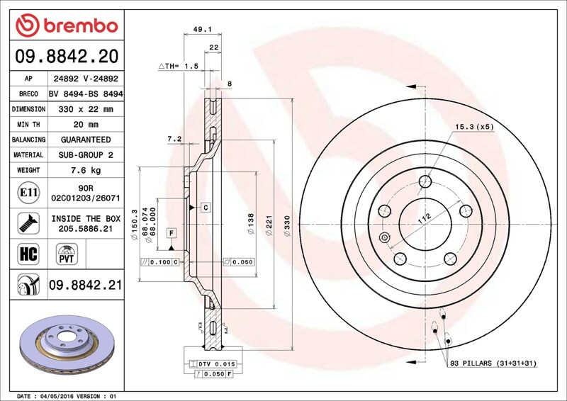 Part number: Brembo 09.8842.21