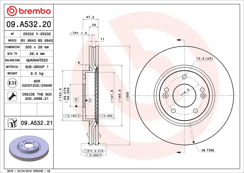 Part number: Brembo 09.A532.21