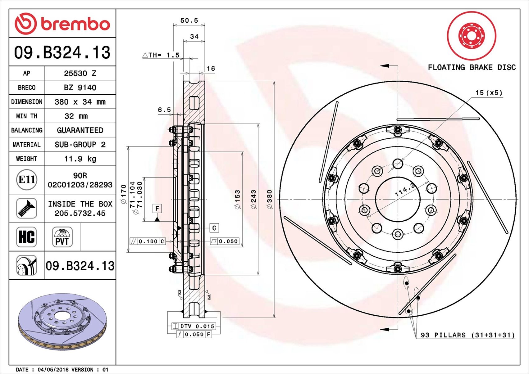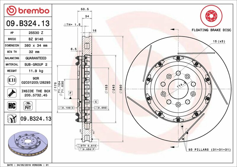 Part number: Brembo 09.B324.13