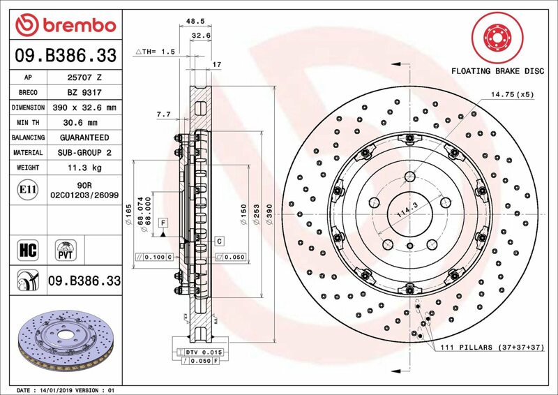 Part number: Brembo 09.B386.33