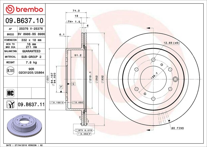 Part number: Brembo 09.B637.11
