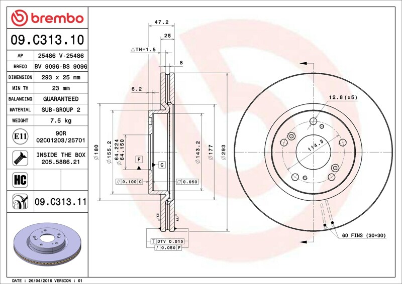 Part number: Brembo 09.C313.11