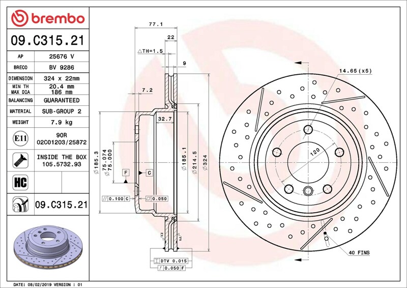 Part number: Brembo 09.C315.21