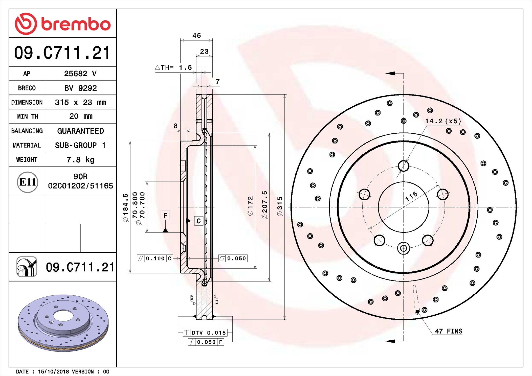 Part number: Brembo 09.C711.21