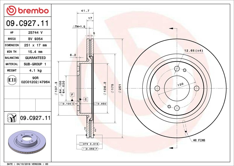 Part number: Brembo 09.C927.11